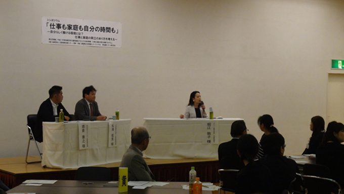 企業の人事・労務担当者、子育て中の方、学生などを交えた多様な立場から「自分らしく働ける職場づくり」をテーマに意見交換を行いました。
