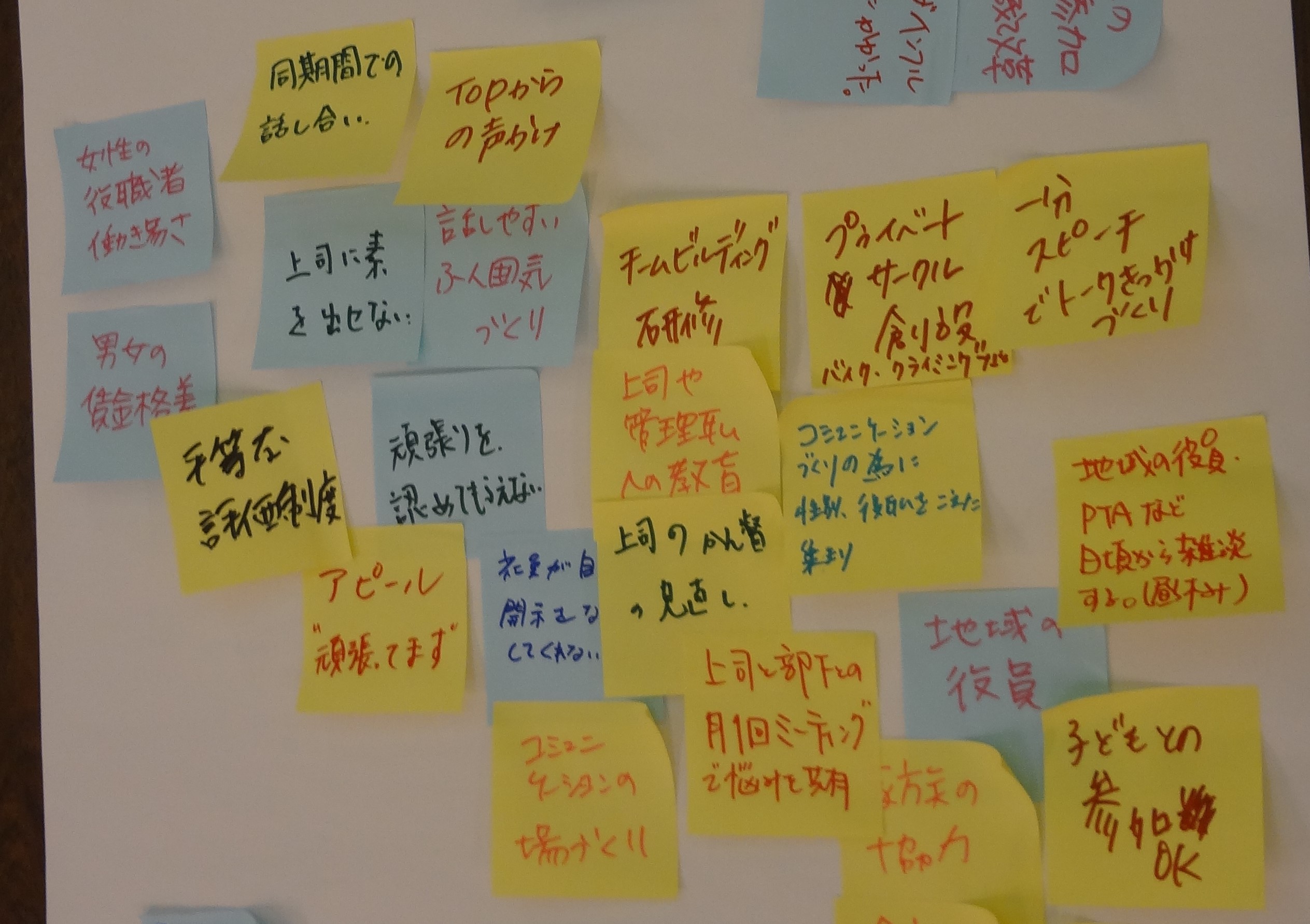 グループに分かれ、「自分らしく働ける職場づくり」への悩みや課題感をそれぞれに挙げ、それに対する解決策を出し合いました。