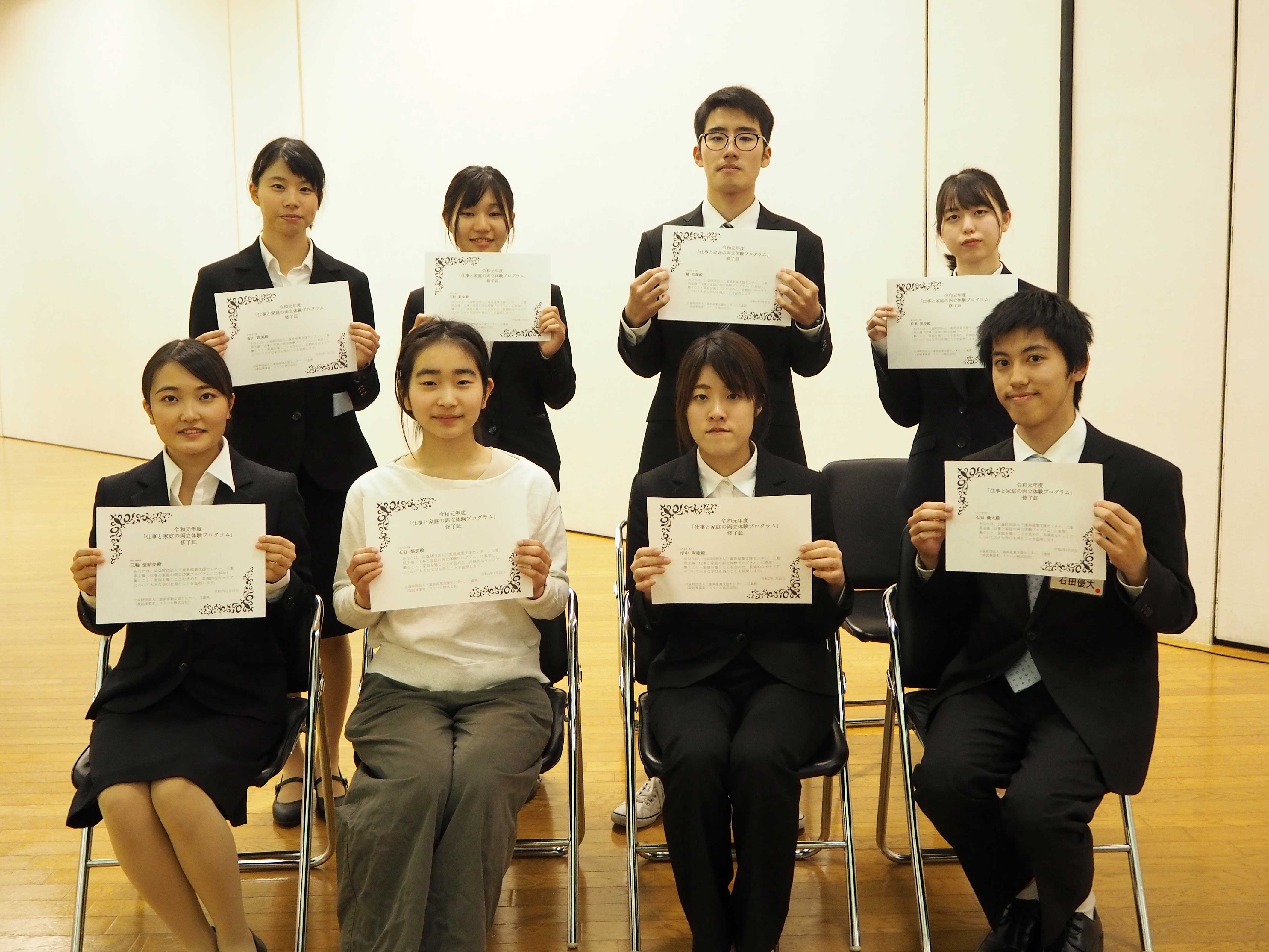 令和元年11月から三重県で実施しておりました厚生労働省「平成31年度三重県地域活性化雇用創造プロジェクト」採択事業『仕事と家庭の両立体験プログラム』に参加した大学生8名(女性6名・男性2名)による最終プレゼンテーションを1月25日(土)に開催致しました。