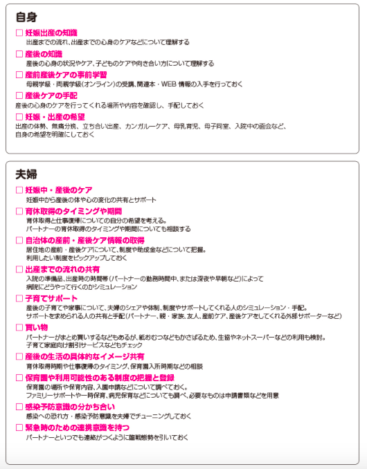 NPO法人ファザーリングジャパンと共同で作成しました「コロナ禍における妊娠出産環境を整えるためのチェックリスト」も参考までにご覧ください。