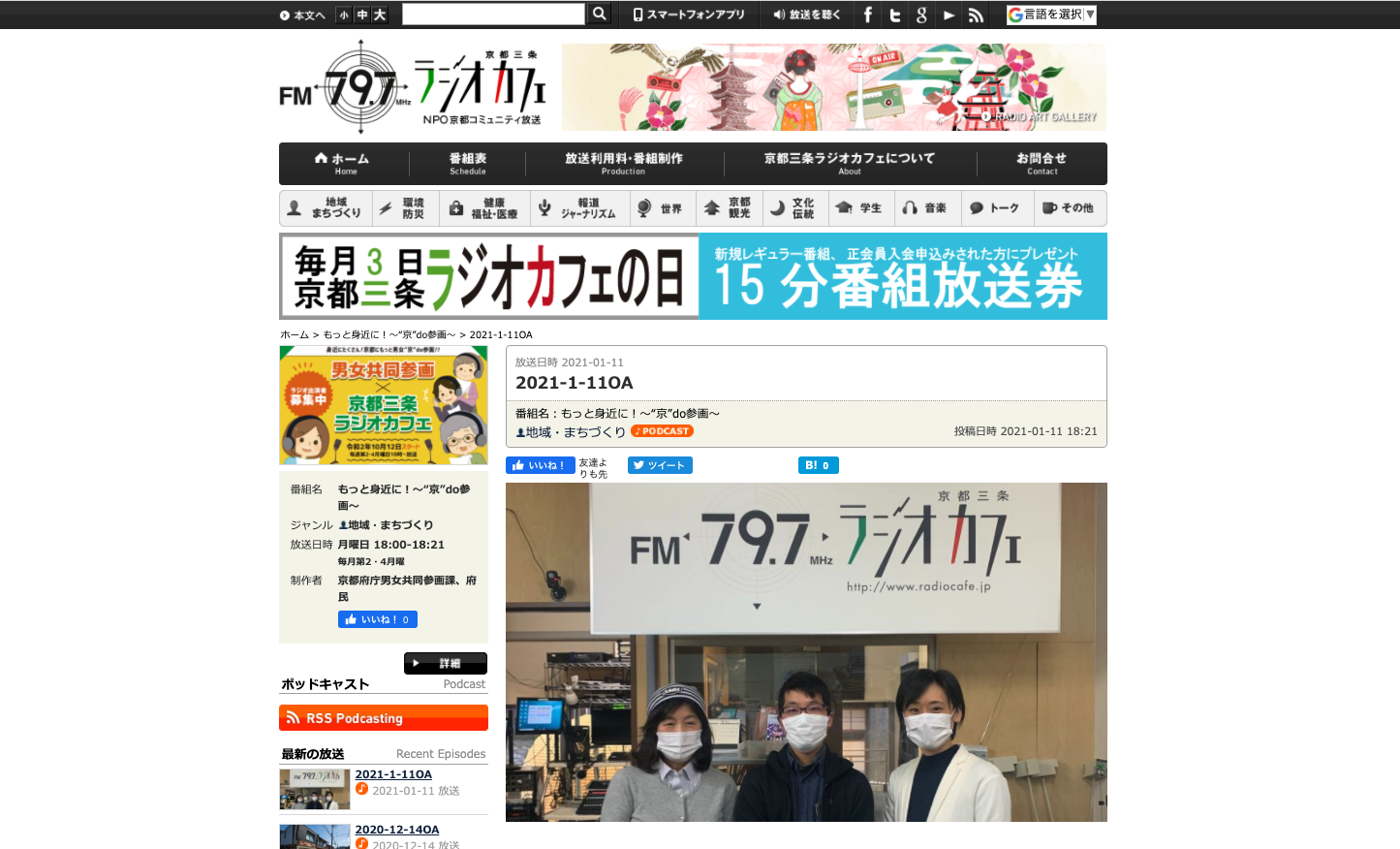 京都府男女共同参画課と京都三条ラジオカフェのラジオ番組