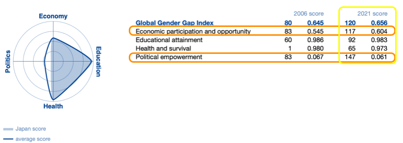 参照:Global Gender Gap Report 2021(P233)より一部編集