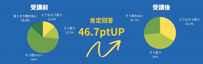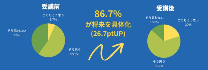 | 今までに体験しなかったような授業でキャリアを多⾓的に捉えるきっかけになった。 |