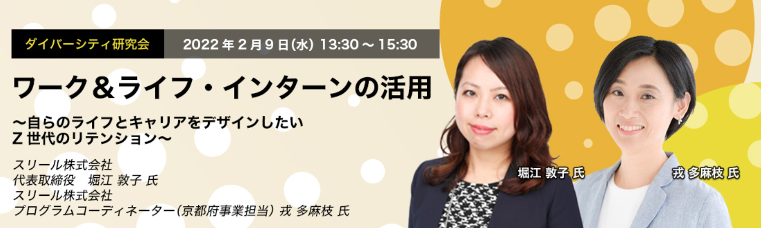 ■イベント詳細 イベント名称:「ワーク&ライフ・インターンの活用~自らのライフとキャリアをデザインしたいZ世代のリテンション~」 日時:2022年2月9日(水)13:30-15:30(予定) ・オンライン:zoom ・来場者登録:無料 ・登壇者: ・主催:日本CHO協会 |