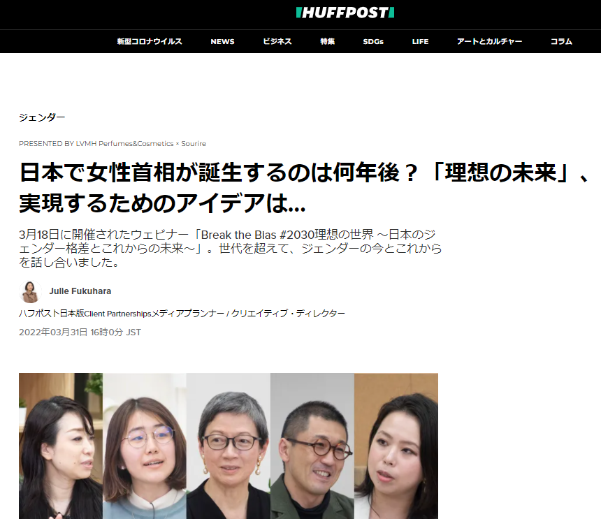 LVMH Perfumes & Cosmeticsとスリール株式会社主催し、3月18日(金)に開催された国際女性デー記念ウェビナー「Break the Bias #2030理想の世界 ~日本のジェンダー格差とこれからの未来」の様子が、ハフポスト日本版に掲載されました。