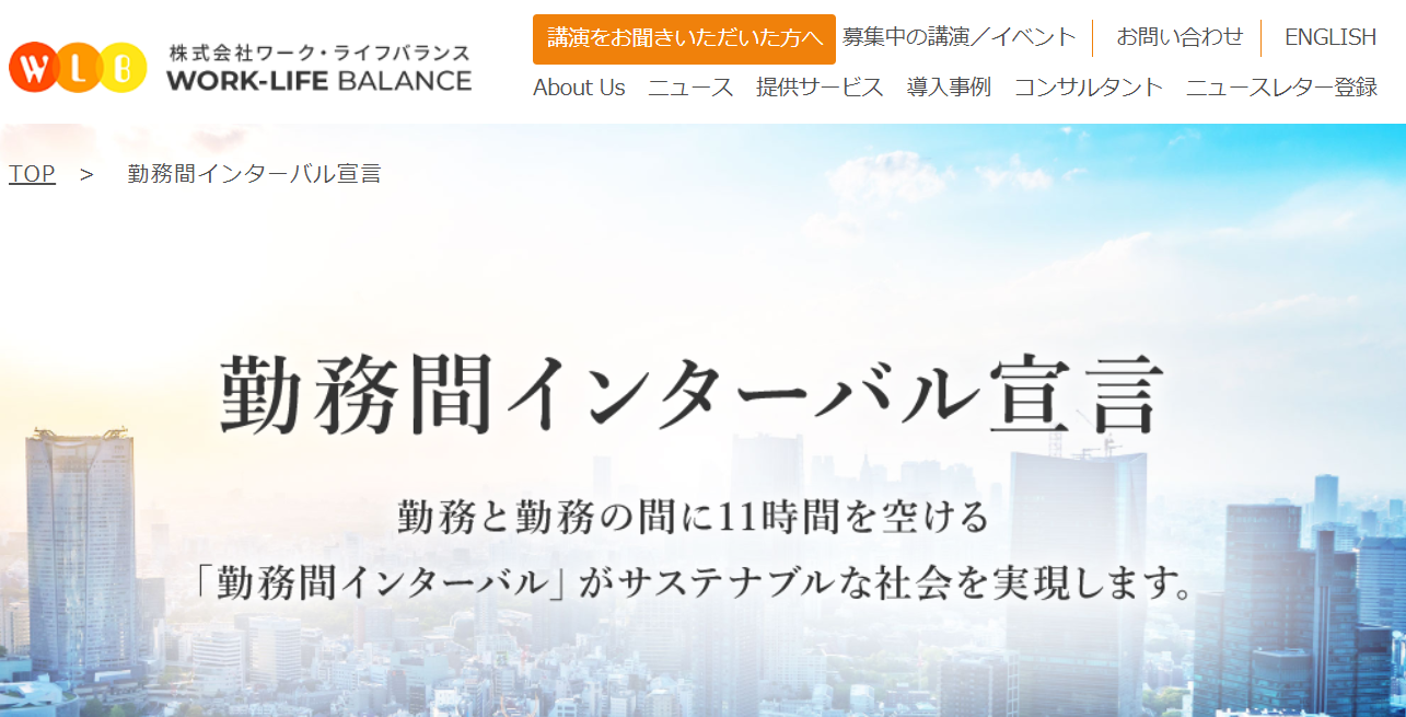 スリールは、株式会社ワーク・ライフバランスが提唱された「勤務間インターバル制度」(勤務と勤務の間に11時間を空け、生産性と健康の好循環社会を目指した宣言)に賛同しました。
