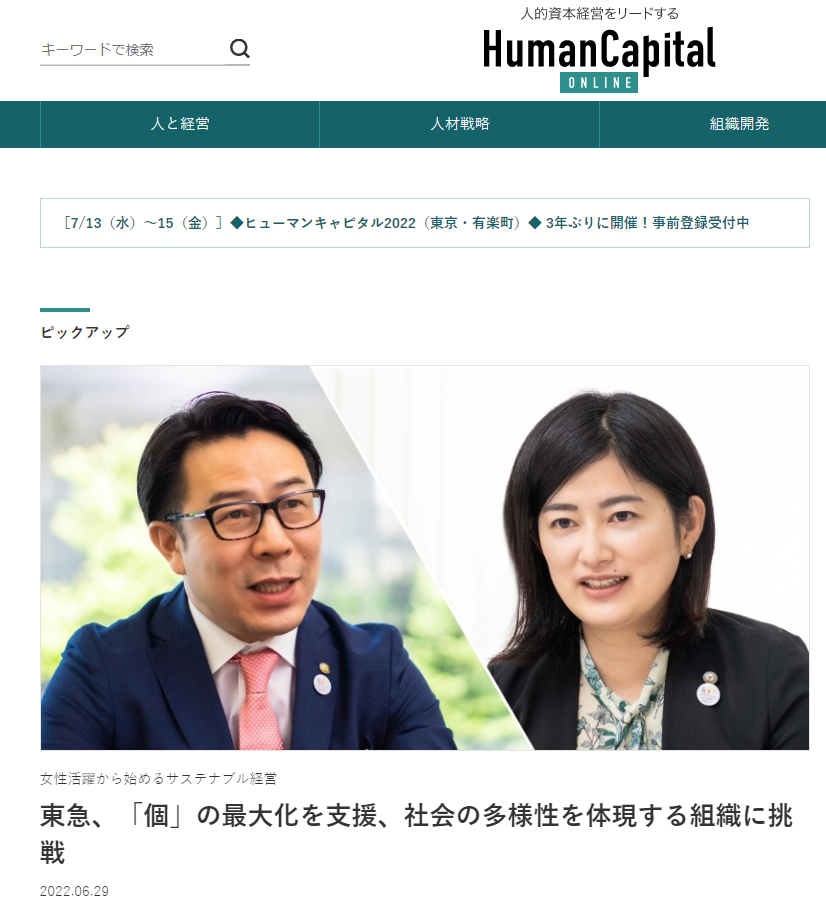 タイトルは、「東急、「個」の最大化を支援、社会の多様性を体現する組織に挑戦」