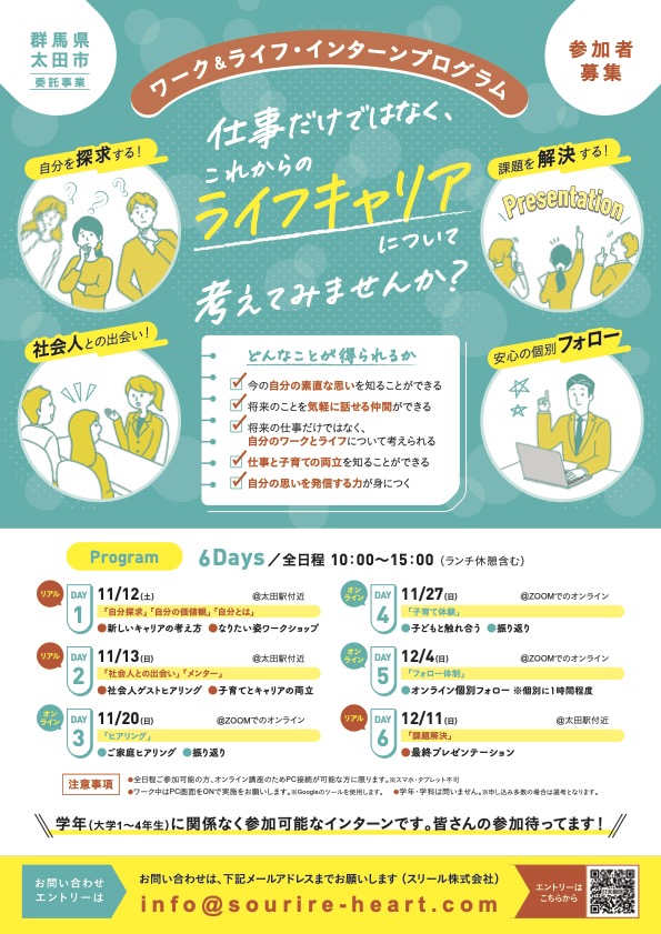 スリールでは、大学や行政のプログラムとして、ワーク・ライフ・インターンを実施しています。