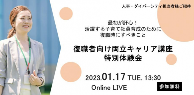 人事・ダイバーシティご担当者様から寄せられる課題やお悩みをテーマに解説する、弊社主催・無料人事向けオンラインセミナー。今回は育休復職社員に活躍してもらうために、復職直後最初にどんなことをどう伝えるのか?ご紹介のほか、実際に弊社の研修で導入している 上司とのコミュニケーションについて、具体的に実践する<他者理解ロープレ>も体験いただきます。