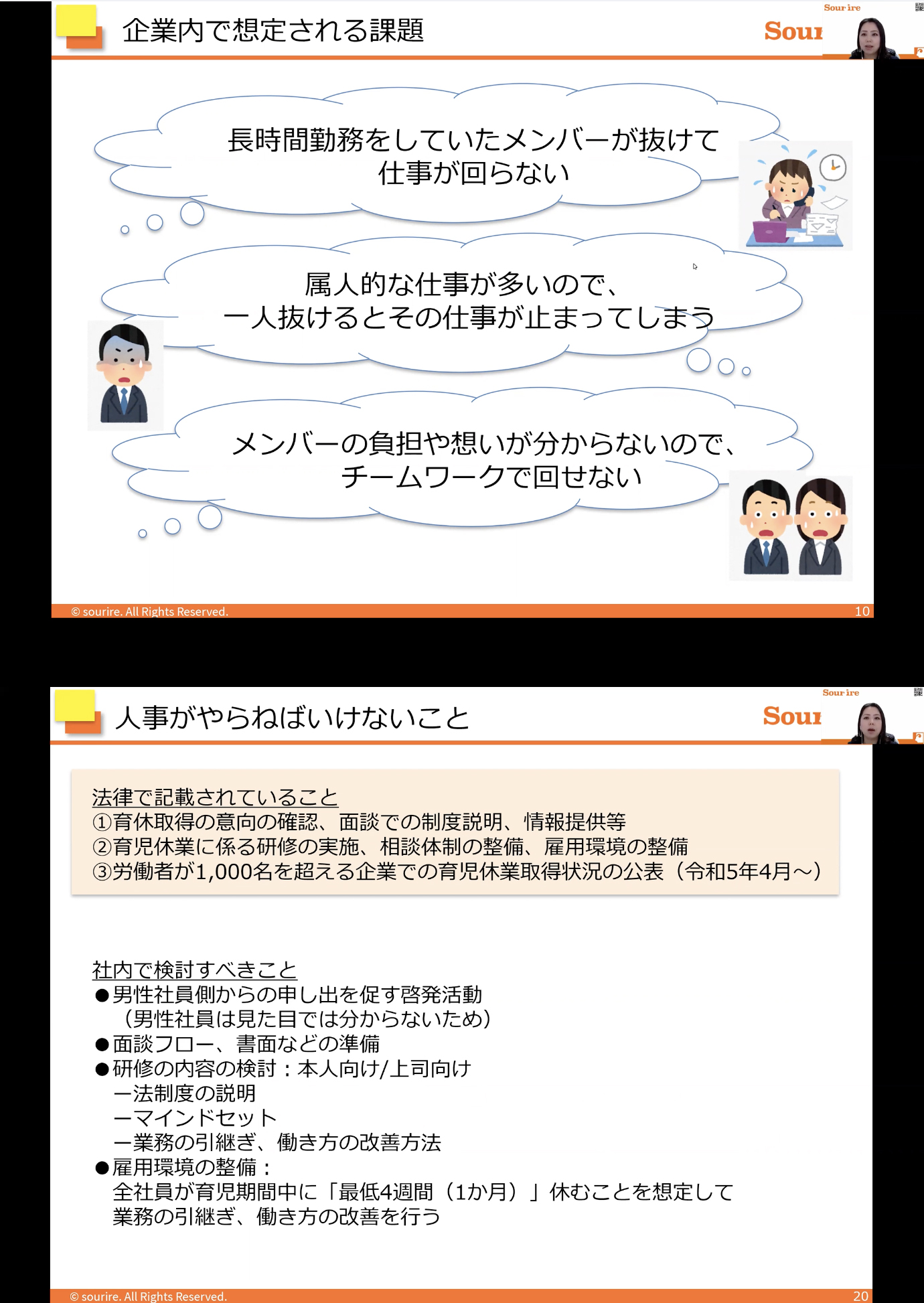 本アーカイブ動画では、法改正で具体的に何が変わるのか?、新設された「産後パパ育休」はどのようなものなのか?といった、男性育休についての基本と促進について、内閣府の専門委員として第5次男女共同参画基本計画にも携わった代表・堀江子がわかりやすくお伝えしていきます。