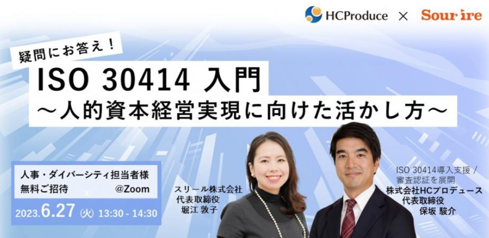 人事・ダイバーシティご担当者様から寄せられるお悩みをテーマに解説する、弊社主催・無料人事向けオンラインセミナー。今回は人的資本情報開示に備えお問合せが増えている「ISO 30414」や「人的資本経営」について、国内唯一のISO 30414導入支援/審査認証機関である(株)HCプロデュース代表の保坂氏にご登壇いただき、「ISO 30414」を活用した組織変革について解説していきます。