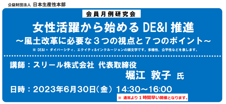 公益財団法人 日本生産性本部が主催する会員月例研究会(6月30日(金)開催)に弊社代表 堀江が登壇します。