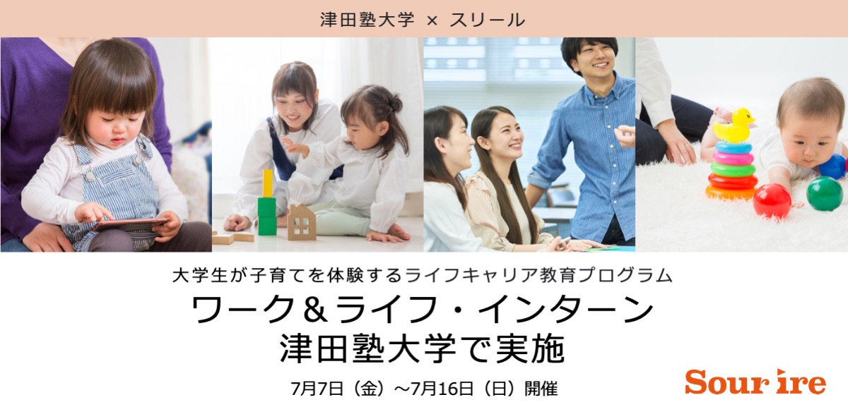 スリールは、大学生が「働くこと」と「家庭を築くこと・子育てをすること」を体験を通してリアルに学び、10年後のなりたい姿をはじめとするライフキャリアを考えるプログラム『ワーク&ライフ・インターン』を、今年も津田塾大学の学外学修センターのプログラムの一環として開催します。津田塾大学は「変革を担う、女性であること」という大学ビジョンのもと、大学として初めて2016年より本プログラムを導入、多くの学生に受講いただいています。