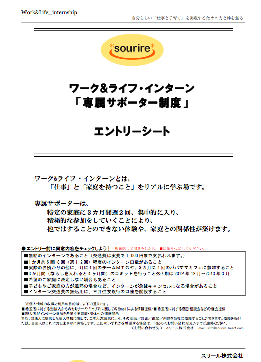 <<ワーク&ライフ・インターン12期(7月〜10月)募集>>