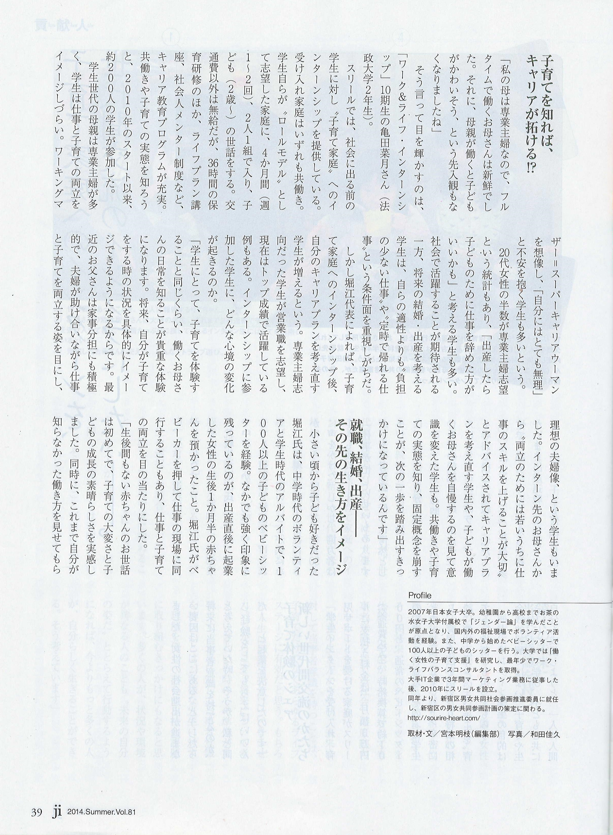 連載記事「貢献人」の第18回として、仕事と子育ての両立を取り巻く現実について、ワーク&ライフ・インターンを行った学生の意識の変化と、ワーク&ライフ・インターン事業を起こすに至った堀江自身の経験を通して、お話しさせていただきました。