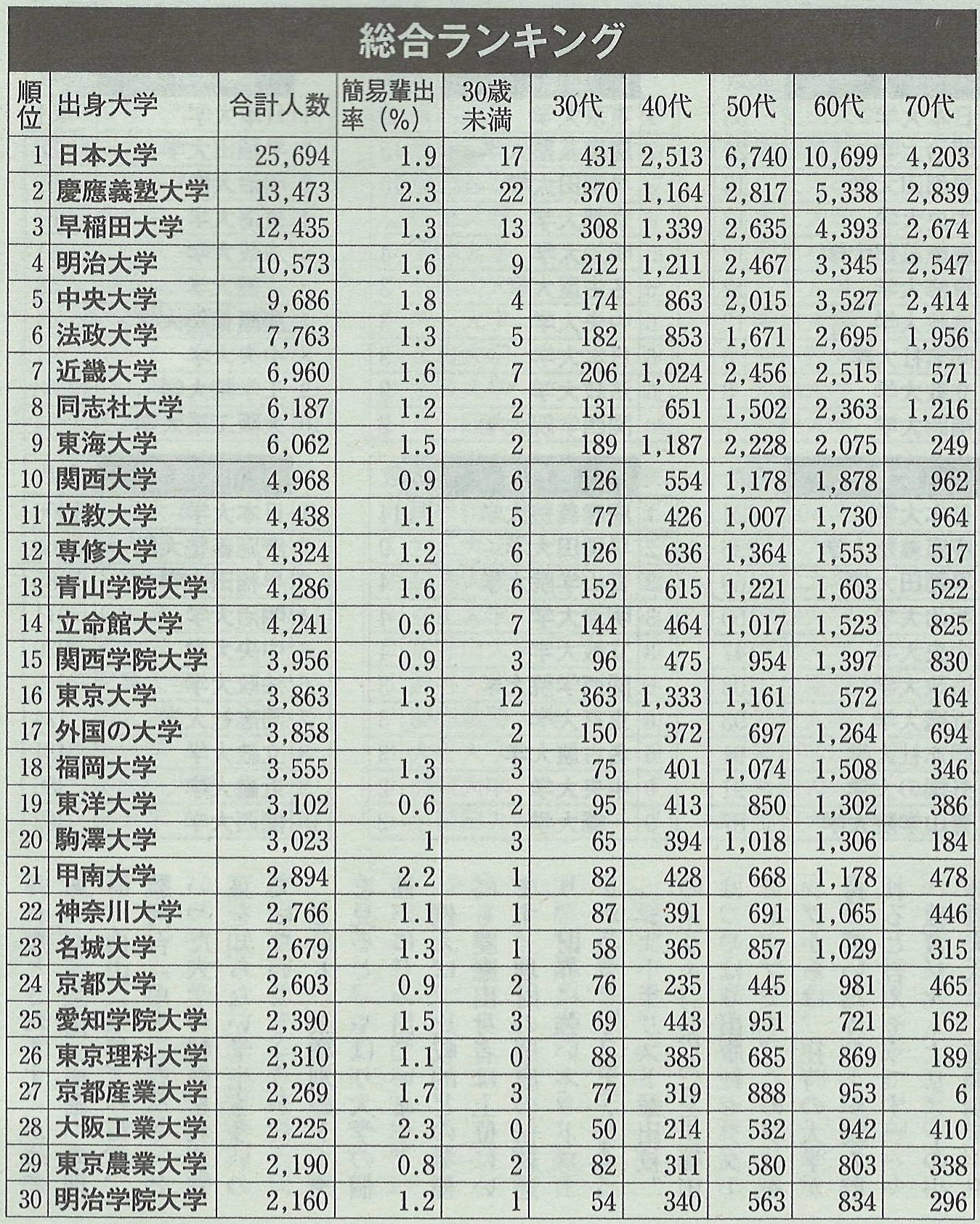 タイトル:全16業種別ランキング「社長の出身大学」◆記事はこちらからご覧ください◆