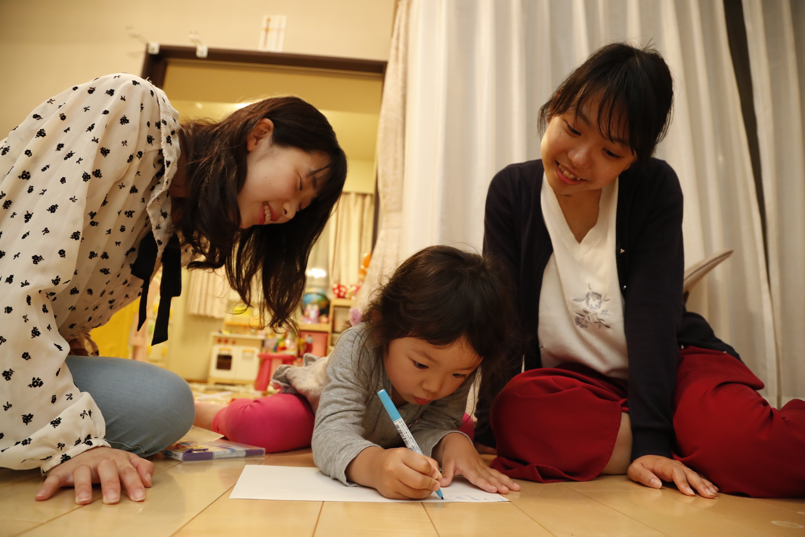 [ママ] 大学や学生に関わりがあったのも大きいですが、大学生に子どもを預けるという点は、抵抗はあまりありませんでした。インターン生たちは、ベビーシッターとして接するというよりも、むしろ、親戚のお姉ちゃんお兄ちゃんが遊びにきてくれる感覚で、家族のような感覚でいられます。親は子どもとめいっぱい遊んであげたくても時間と体力の制限がある中で、インターン生たちが娘と思いきり遊んでくれるので、娘にとっても親にとっても魅力的です。