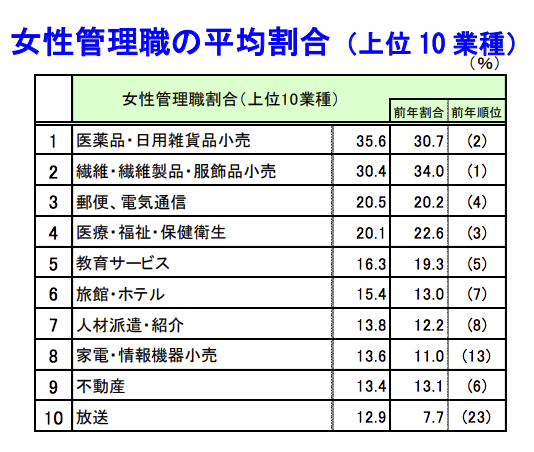 管理職に占める女性の割合も、女性の昇級のしやすさを測るということで評価基準に設けられています。