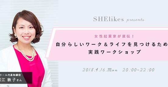 4/16(月) SHElikes主催 「女性起業家が直伝!自分らしいワーク&ライフを 見つけるための実践ワークショップ」にて代表の堀江が登壇します。