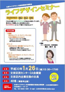 1月26日(金)に、文京ライフデザイン交流事業実行委員会主催のイベントで弊社代表の堀江が講師を務めます。