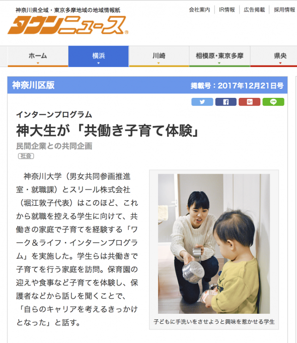 ▼タウンニュース「インターンプログラム神大生が『共働き子育て体験』」