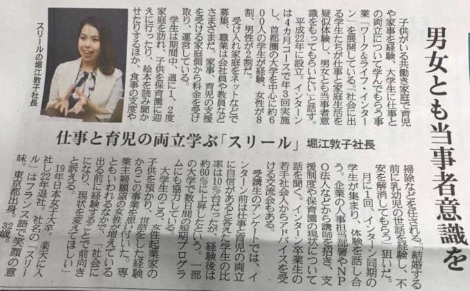 11/6産経新聞朝刊にスリールの事業について掲載ただきました。