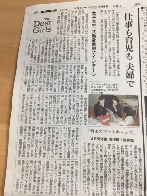 3/8(水)の国際女性デーに因んで、朝日新聞で「仕事も育児も 夫婦で」という特集が組まれまして、スリールにて実施している2つの事業が取り上げられました。