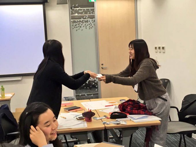 また、ペア、チームのメンバーにThank youカードという、相手の素敵なところを書いて、直接伝えて渡し合いました。