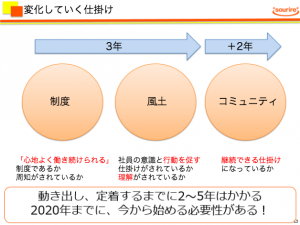 施策が周知されて組織に定着し、継続できる仕掛けづくりを行っていくためには時間がかかります。