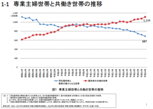 女性の社会進出が進む中、平成4年以降「専業主婦世帯」を「共働き世帯」の数が上回っています。