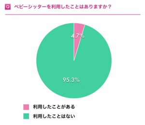 ベビーシッターやファミリーサポート、病児保育などの保育サポートを利用したくても利用しないという状況もあります。キッズラインの調査によると、ベビーシッターを使用したいと答えた人が「58.6%」もいたにも関わらず、実際に利用した人は「5%」に留まっています。ベビーシッター利用後の調査では、利用への抵抗感は「28.2%」と、利用前の「72.1%」比べて大幅に減少しました。その理由は、「シッターとの信頼関係ができた」(73.7%)、「子どもにも良い影響があると感じた」(58.3%)、「安全面、盗難・物損がないとわかった」(40.0%)という結果でした。