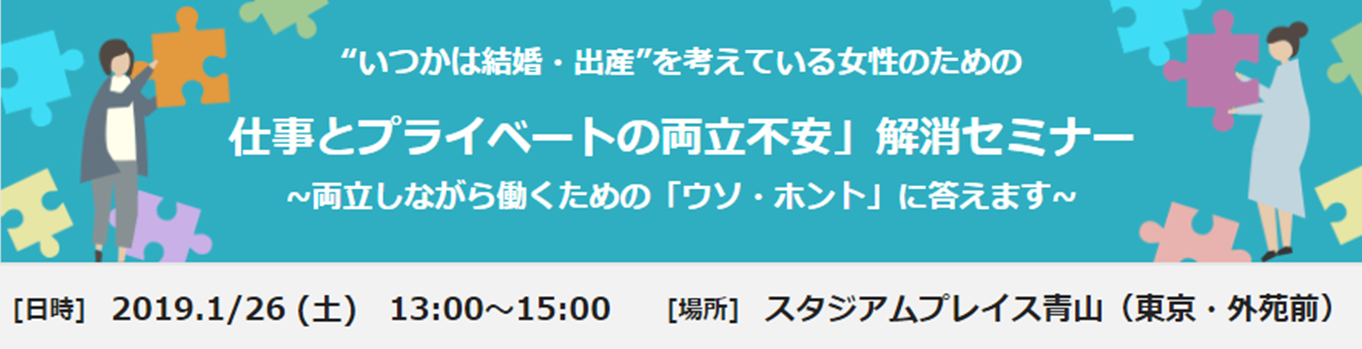 第16回を数える本イベント。今回は、”いつかは結婚・出産”を考えている女性のための「仕事とプライベートの両立不安」解消セミナーです。