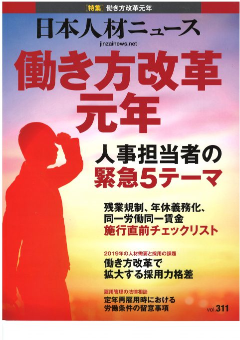 企業人事向け専門誌『日本人材ニュース』の「働き方改革」特集にスリールの研修を取り上げていただきました。