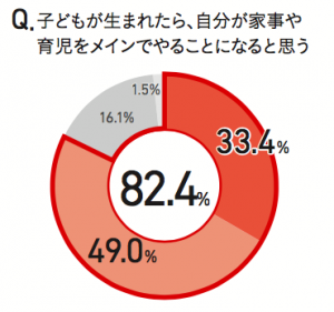 スリールの調査でも、子どもが生まれたら「家事と育児の主担当は自分だと考えている」女性が全体の8割強と多く、女性側でも夫はあくまで”サポート”だと意識が根付いていました。