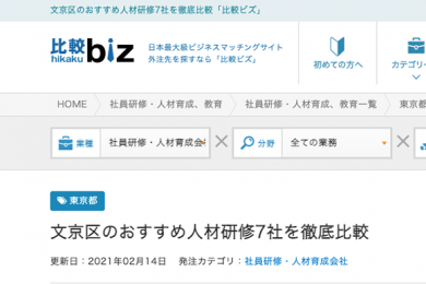 【メディア掲載】「比較ビズ」Webサイトの『文京区のおすすめ人材研修会社7社(...)