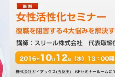 【イベントのご案内】10/12(水)13:30〜 真の女性活躍に向けてのセ(...)
