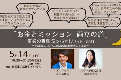 【講演情報】5/14(月) お金とミッション 両立の道〜事業の裏側ぶっちゃけ(...)